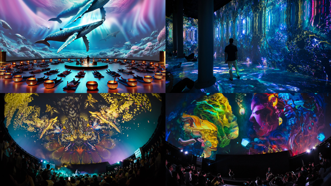 走入球形巨幕,常规宇宙的物理法则就此失效,360的光瀑将你彻底吞没:上一秒,你正随航天器穿透土星环,冰晶在指尖炸裂成亿万颗钻石;下一秒,幽灵鲸群拖着你坠入万米海渊,发光水母如星辰般掠过发梢。