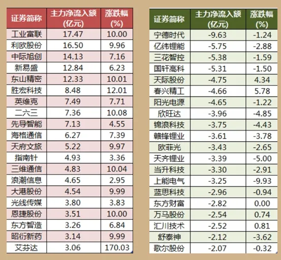 3、两市主力资金净流出12.94亿元——