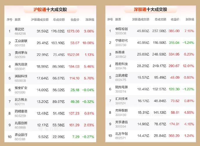 4、北向资金共成交2636.15亿元,占两市总成交额的13.33%——