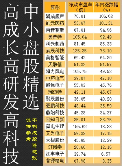 优质中小盘科技股曝光