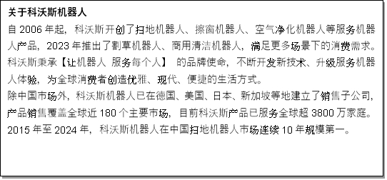除了产品创新之外,科沃斯还持续强化端到端供应链,为多元场景机器人领域的领导力奠定基础。2024 年,公司在研发上的投入约为8.85亿元,同比增长 7.3%。2025 年 7 月,科沃斯宣布计划投资2亿元,在湖州建设机器人核心部件及机器人本体制造项目,是科沃斯布局具身智能的重要举措。科沃斯已在动力电池、电机、清洁系统与人工智能等机器人核心技术上实现自研自产,不仅为地宝、窗宝、GOAT等行业领先产品提供坚实驱动力,也为公司持续扩展的多场景产品矩阵注入创新动力。