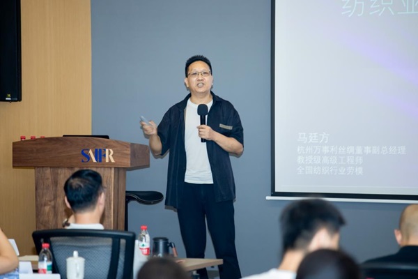 紧接着,杭州万事利丝绸文化股份有限公司董事副总经理马廷方以“纺织业市场分析与发展展望”为主题,分享了数码印花技术对传统印染行业的革新意义。他指出,通过数字化设计与智能制造,企业可实现“小批量、快反应”的柔性生产模式,降低库存压力的同时提升品牌附加值。“科技与产业的深度融合,正在重塑纺织业的竞争力。”马廷方以万事利与丝绸文化IP的跨界合作为例,生动诠释了数字化如何推动传统产业迈向现代化。