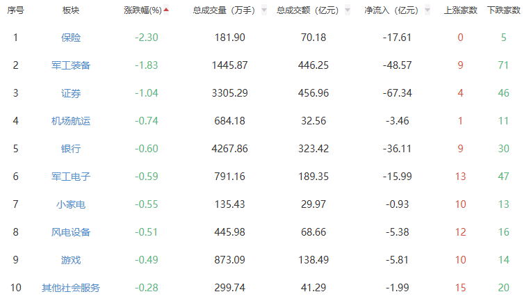 板块方面,贵金属、生物制品、影视院线等板块涨幅居前,保险、军工装备、证券等板块跌幅居前。