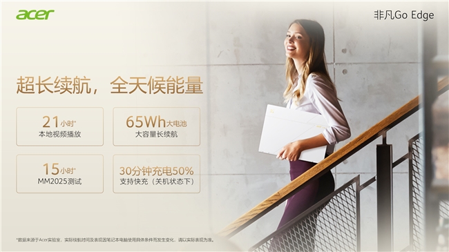 在人工智能与移动办公全面融合的当下,轻量化、高效能与智慧体验逐渐成为办公族对于PC关注的核心,而这一切能力的根基离不开“长续航”。作为全球PC行业的引领者,宏碁始终关注职场用户、创意工作者与科技先锋的多元需求,不断探索未来移动生产力工具的可能性。2025年9月,宏碁将正式推出全新力作非凡Go Edge,并于今日开启预约!