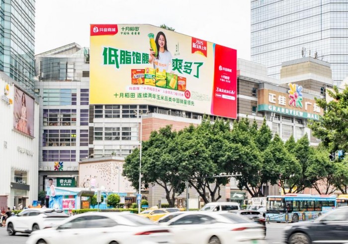 业绩走高之际,十月稻田的线下营销攻势同样引人注目。一句“低脂饱腹爽多了!”的魔性广告语,迅速席卷全国多个重点机场及户外地标大屏,在传递品牌健康理念的同时,也成功抢占消费者心智。