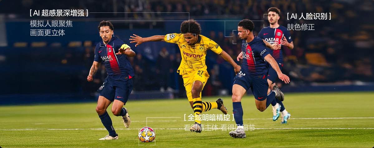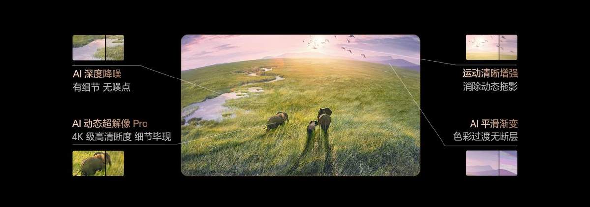 不过,很多人在考虑购买大屏电视时,心中难免会有顾虑:当屏幕放大后,如果画质跟不上,画面清晰度反而堪忧,导致模糊和严重的颗粒感。所以,一颗强大的画质调节芯片对大屏电视是尤为重要的。以100吋海信U8Q Pro为例,它搭载海信研发的信芯AI画质芯片H7,凭借其卓越的AI算力,能够对动态画面进行实时优化。无论是老旧影片的低分辨率画面,还是日常观看的普通节目,都能通过芯片智能重构画面细节、渲染立体层次,即使2K内容也能提升至4K的超高清效果,确保巨幕上的每一帧画面都清晰锐利。