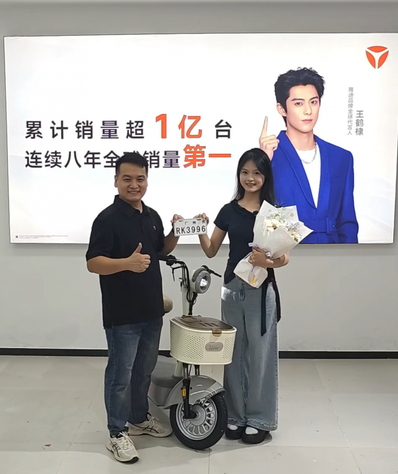 8月25日,雅迪在广州开设了全国新国标电动自行车专卖店。开业当天,该店完成了首张新国标电动自行车车牌的登记上牌,意味着新国标车从此进入正式落地阶段。
