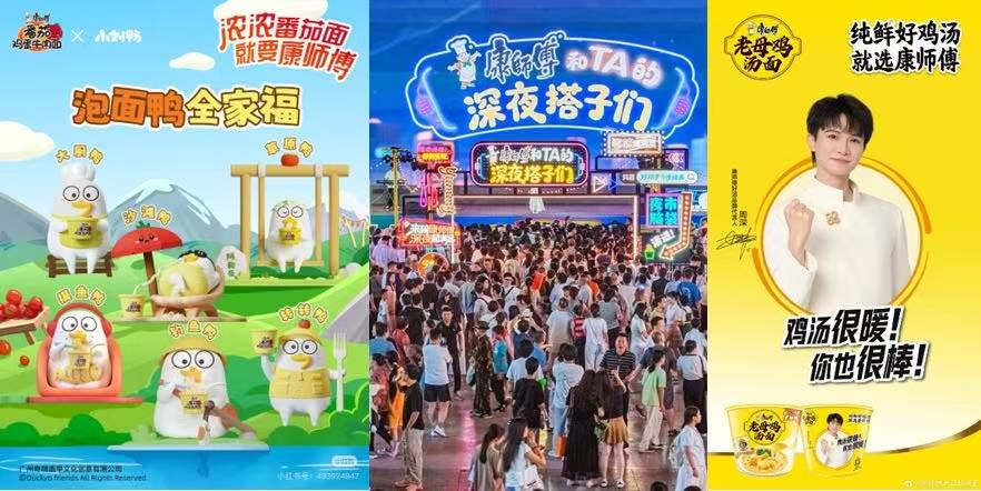 产品之外,康师傅在情绪营销上的实践,已突破了单纯售卖产品的逻辑,转而挖掘的“情绪价值”。在捕捉到了Z世代“追求陪伴、渴望认同、乐于分享”的情感内核后,康师傅通过IP联名、明星代言等策略,将一碗面转化为一种社交货币和情感载体。