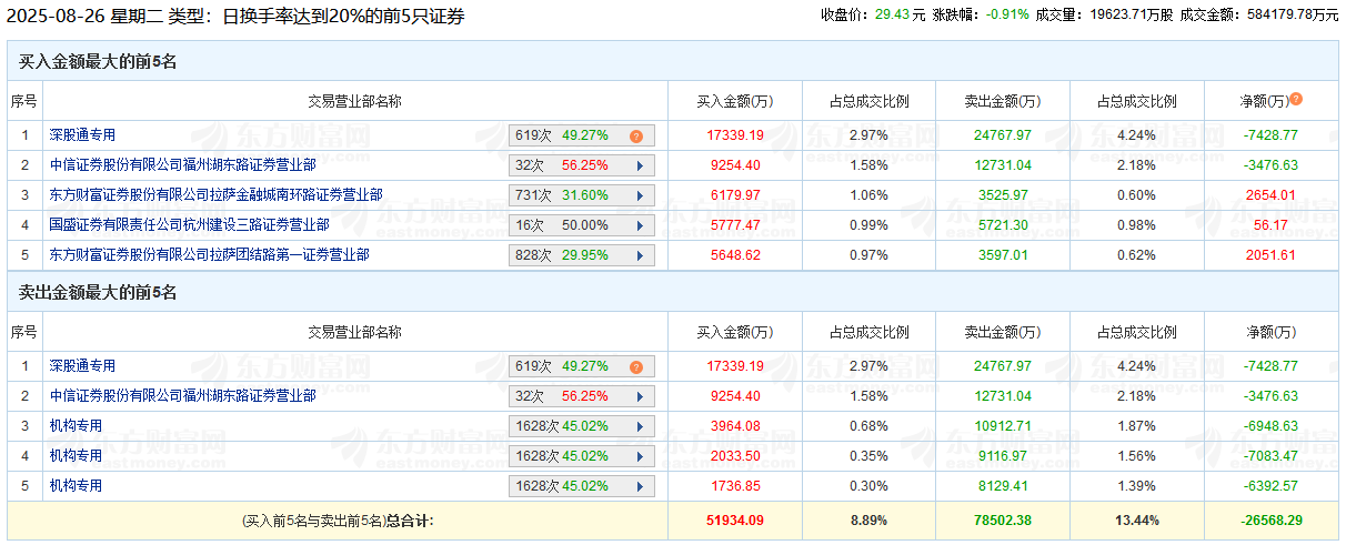 龙虎榜数据显示,卖出恒宝股份金额最大的前5名中,3家为机构专用席位。经统计,机构席位今日卖出恒宝股份净额为20424.67万元。