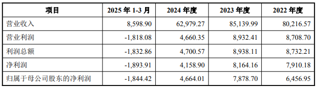 陕西华达2022-2024年及2025年1-3月的主要财务数据如下: