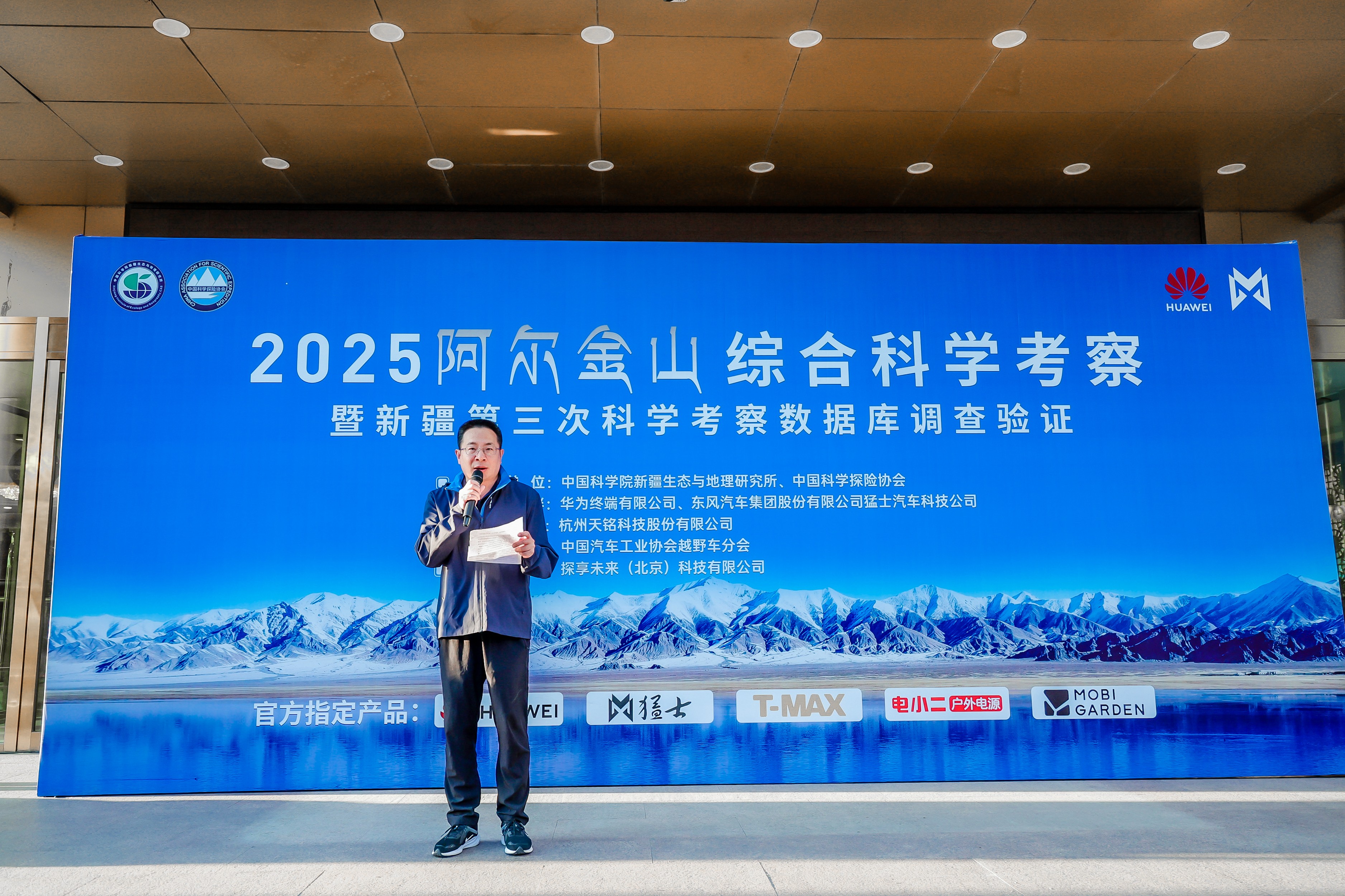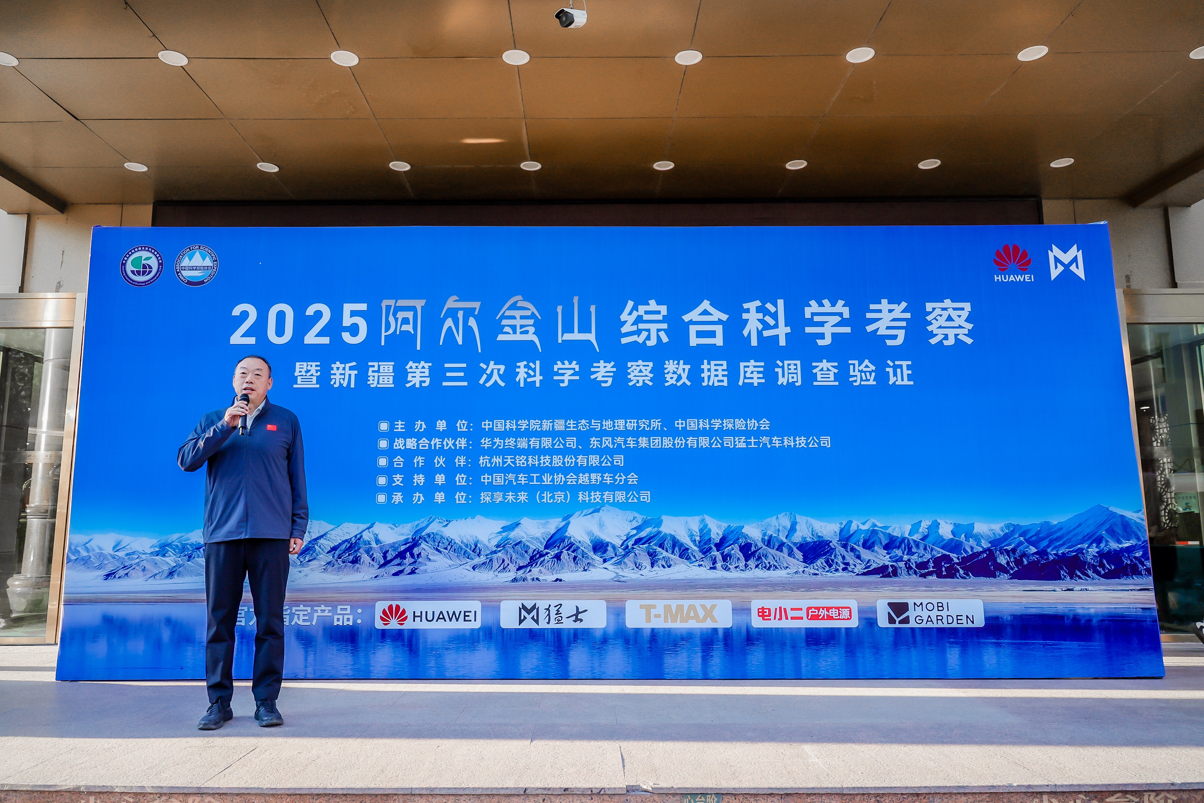 中国科学院新疆生态与地理研究所书记张向军,东风汽车集团股份有限公司猛士汽车科技公司党委书记、纪委书记、工会主席孙三宝出席仪式并致辞。张向军书记向本次科考队队长、中国科学探险协会驻会副理事长李杰授队旗,并发布出发令。