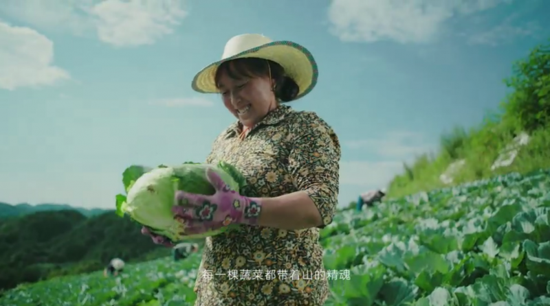 活动现场首次发布了“曾家山蔬”品牌宣传片《大山里的名片》,以电影级质感生动讲述了从高山田间到城市餐桌的动人故事。该片以1300米海拔的曾家山晨雾航拍开篇,镜头掠过沾满露水的甘蓝田、早起的农人身影和跃动的田间生灵,充分展现曾家山独特冷凉气候和优质生态画卷。全片通过真实记录从采摘、分拣、预冷到冷链运输的全过程,并与城市消费者挑选蔬菜的温馨场景巧妙呼应,深刻诠释了“每一棵蔬菜都是大山的馈赠”的品牌内核,为市场拓展注入深厚的人文共鸣与传播动能。