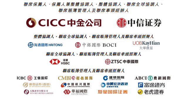 天岳先进的联席保荐人、保荐人兼整体协调人、整体协调人、联席全球协调人、联席账簿管理人及联席牵头经办人为中国国际金融香港证券有限公司、中信证券(香港)有限公司、中信里昂证券有限公司,整体协调人、联席全球协调人、联席账簿管理人及联席牵头经办人为海通国际证券有限公司、中银国际亚洲有限公司、大华继显(香港)有限公司,联席全球协调人、联席账簿管理人及联席牵头经办人为香港上海汇丰银行有限公司、中泰国际证券有限公司,联席账簿管理人及联席牵头经办人为工银国际证券有限公司、招银国际融资有限公司、建银国际金融有限公司、农银国际融资有限公司、广发证券(香港)经纪有限公司、中国银河国际证券(香港)有限公司、申万宏源证券(香港)有限公司、富途证券国际(香港)有限公司、太阳证券有限公司、华福国际证券有限公司、复星国际证券有限公司、老虎证券(香港)环球有限公司。