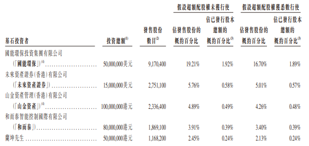 天岳先进的基石投资者为国能环保投资集团有限公司、未来资产证券(香港)有限公司、山金资产管理(香港)有限公司、和而泰智能控制国际有限公司、兰坤。