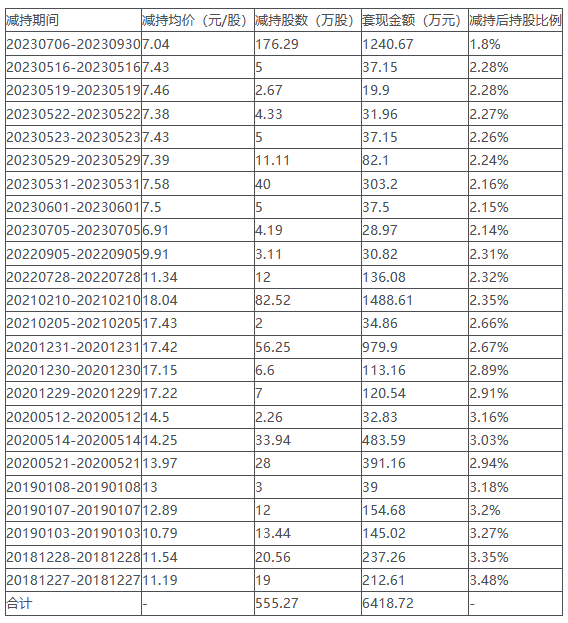 其中,彭九莲拟减持不超过2,300,000股,占公司总股本的比例为0.4404%;毛志平拟减持不超过743,412股,占公司总股本的比例为0.1424%;乐珍荣拟减持不超过393,500股,占公司总股本的比例为0.0753%;刘明拟减持不超过167,300股,占公司总股本的比例为0.0320%;王甘英拟减持不超过227,750股,占公司总股本的比例为0.0436%;冷玲丽拟减持不超过131,030股,占公司总股本的比例为0.0251%;刘炳荣拟减持不超过130,650股,占公司总股本的比例为0.0250%。