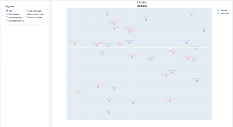 散点图直观呈现品牌间关联强度,支持跨维度属性关系分析。