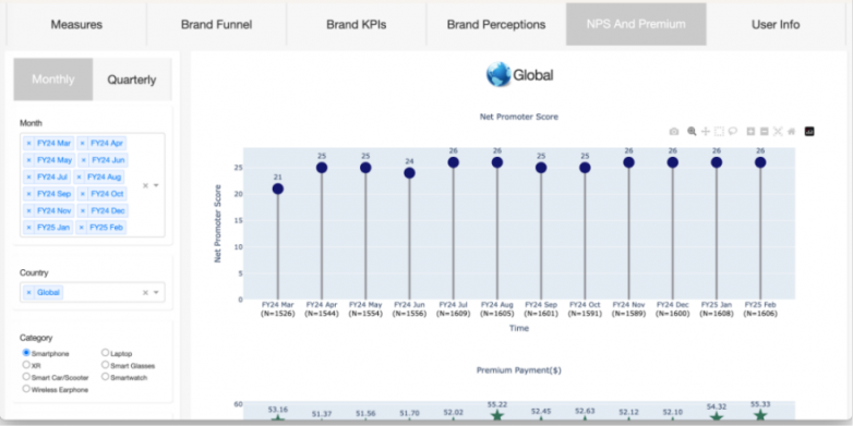 趋势柱形图展示NPS评分与支付行为月度波动,附带时间轴缩放功能