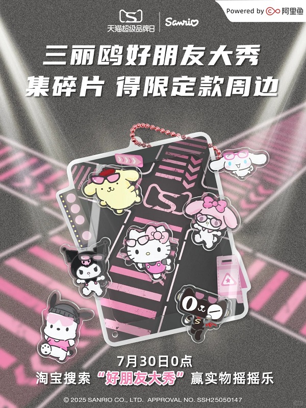8月6日,三丽鸥再度携手阿里鱼与天猫共同打造的“三丽鸥天猫超级品牌日”正式启幕。活动由美乐蒂与酷洛米领衔,Hello Kitty、大耳狗、布丁狗、帕恰狗及天猫吉祥物猫天天倾情加盟,共同演绎了一场以“好朋友就要秀在一起”为主题的粉色街头大秀。本次活动汇聚逾50家品牌,推出2000余款三丽鸥家族IP好物。8月8日,TOUTOU、tbh野兽派家居、潮宏基等品牌多款联名商品还亮相李佳琦直播间火爆开售。