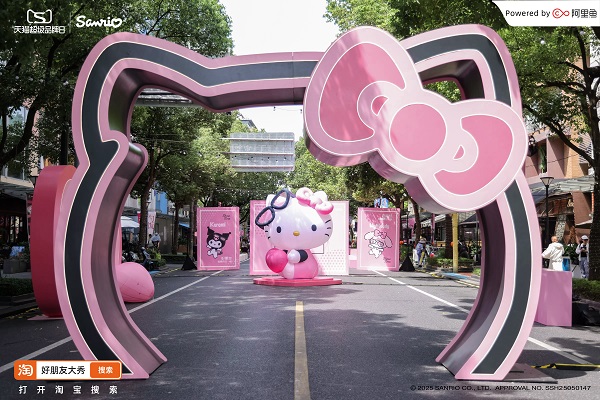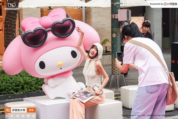 哇!超大的粉色墨镜Hello Kitty,快过来拍照!” 8月9日,步入上海杨浦区大学路,以天猫三丽鸥街头大秀为主题的3000㎡三丽鸥“痛”街盛大亮相。现场,众多身背三丽鸥家族痛包、手持IP玩偶的用户争相拍照打卡,热情参与互动。