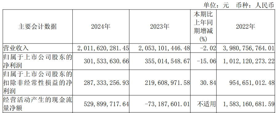2022年至2024年,亚辉龙的营业收入分别为39.81亿元、20.53亿元和20.12亿元;归属于上市公司股东的净利润分别为10.12亿元、3.55亿元和3.02亿元;归属于上市公司股东的扣非净利润分别为9.55亿元、2.20亿元和2.87亿元;经营活动产生的现金流量净额分别为15.83亿元、-7318.76万元和5.30亿元。