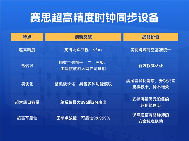 作为时钟同步领域的核心服务商,赛思电子此次中标的超高精度时钟同步设备,凭借五项颠覆性技术破解全国一体化时钟同步网络建设时序难题,成为中国移动全国一体化时钟同步网的关键支撑。设备具备超高稳定性,在核心骨干节点不间断稳定运行多年,每日承载海量网元设备接入需求,无单点故障,可靠性超 99.99%。