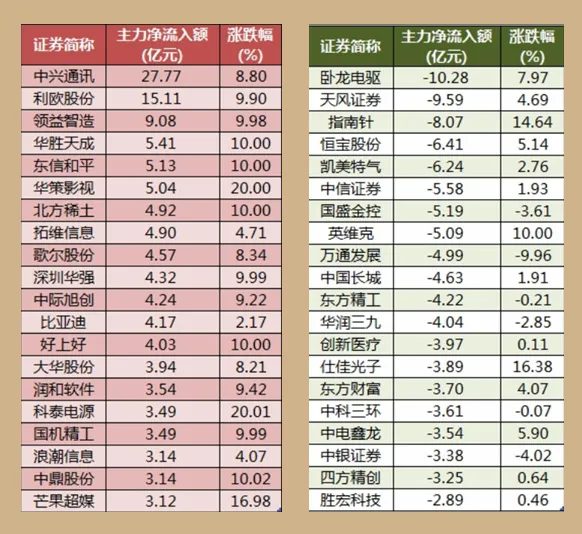 3、两市主力资金净流出137.49亿元——