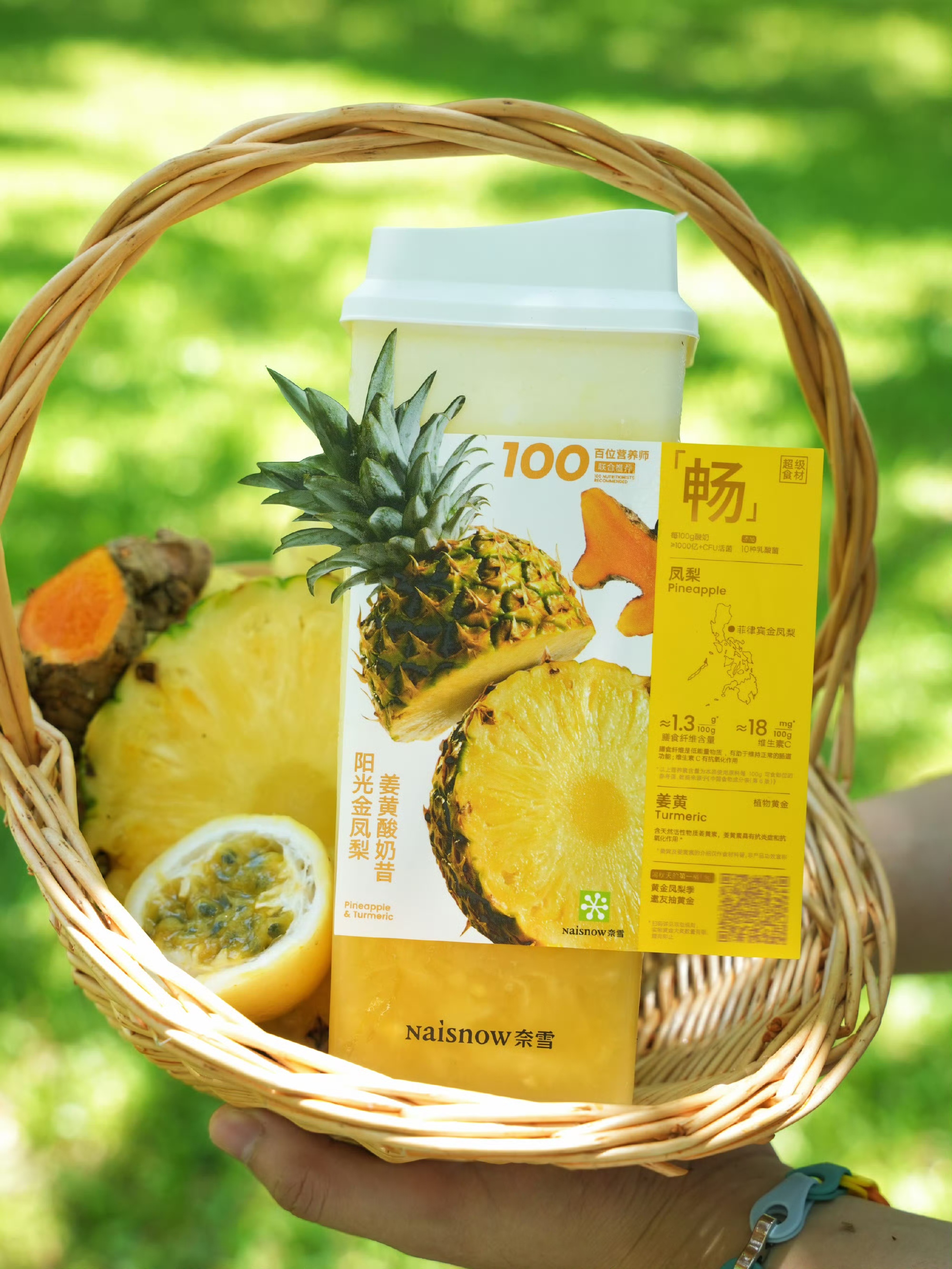 据介绍,姜黄中的天然活性成分姜黄素,其抗氧化与抗炎功效已得到全球科研的广泛验证。奈雪通过精准配比,让姜黄与菲律宾进口金凤梨、黄金百香果等超级食材形成“黄金组合”:金凤梨含菠萝蛋白酶助于消化吸收,百香果含膳食纤维有益肠道健康,三者协同形成天然维生素矩阵——数据显示,该产品维生素C含量约8.2mg/100g,一杯即可补充人体每日所需维生素C约50%;酸奶基底添加10种活性菌群,每100g含≥千亿 CFU,为肠道健康筑起防护屏障。