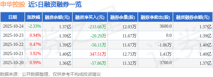 申华控股融资融券信息显示,融资方面,当日融资买入658.14万元,融资偿还891.8万元,融资净偿还233.66万元。融券方面,融券卖出4300.0股,融券偿还700.0股,融券余量12.03万股,融券余额25.26万元。融资融券余额1.37亿元。
