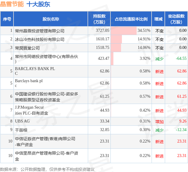 根据晶雪节能2025年中报公布的十大股东详情如下: