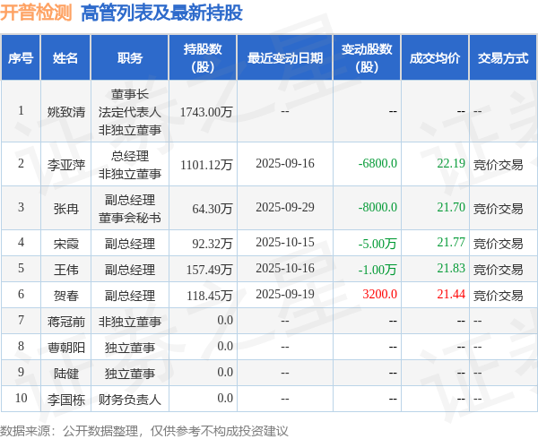 开普检测的高管列表及持股情况如下: