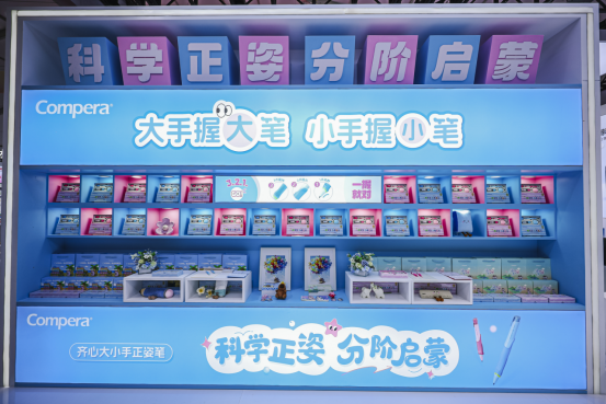 在功能创新方面,Compera、V'mo品牌带来时尚新颖的创新产品,满足消费者的个性化需求。Compera大小手正姿自动铅笔套装根据中国孩子手掌长度研发,通过分级(手长135mm用大笔,手长135mm用小笔)和精准定位设计,科学引导正姿,守护儿童成长健康。V'mo指纹锁系列重新定义社交安全距离,满足外出场景的隐私和安全需求。