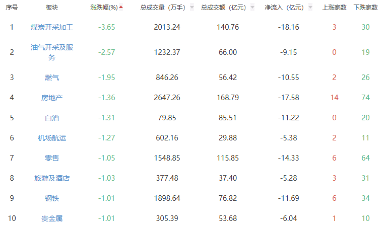 板块方面,元件、半导体、电子化学品等板块涨幅居前,煤炭开采加工、油气开采及服务、燃气等板块跌幅居前。
