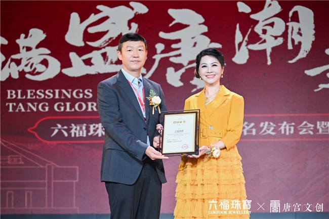 六福珠宝与国家文化产业发展项目库重点项目(唐宫文创)早前宣布达成战略合作,共同推出以盛唐气象为核心的珠宝臻品,此次合作涵盖三大国风IP:包括年度"中国十大IP"《唐宫夜宴》,以及《洛神水赋》和《龙门金刚》,通过深度绑定盛唐文化精神内核,以珠宝艺术重释中华文化巅峰的当代表达,共启国潮新篇章。