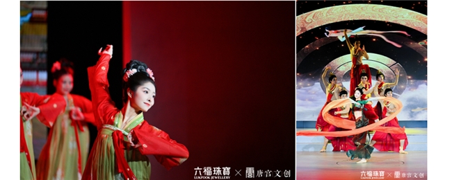 (图:六福珠宝X唐宫文创《唐宫夜宴》、《龙门金刚》舞蹈表演)