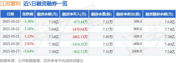 江苏雷利融资融券信息显示,融资方面,当日融资买入4403.07万元,融资偿还5376.52万元,融资净偿还973.44万元。融券方面,融券卖出500.0股,融券偿还0.0股,融券余量7.22万股,融券余额379.15万元。融资融券余额7.63亿元。