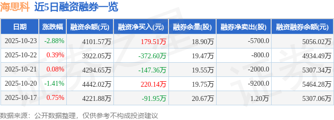 海思科融资融券信息显示,融资方面,当日融资买入1033.25万元,融资偿还853.74万元,融资净买入179.51万元。融券方面,融券卖出3500.0股,融券偿还9200.0股,融券余量18.9万股,融券余额954.45万元。融资融券余额5056.02万元。