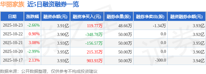 华丽家族融资融券信息显示,融资方面,当日融资买入1331.79万元,融资偿还1212.02万元,融资净买入119.77万元。融券方面,融券卖出0.0股,融券偿还1.34万股,融券余量48.66万股,融券余额160.09万元。融资融券余额3.93亿元。