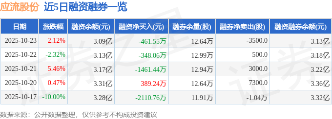 应流股份融资融券信息显示,融资方面,当日融资买入4126.6万元,融资偿还4588.15万元,融资净偿还461.55万元。融券方面,融券卖出1900.0股,融券偿还5400.0股,融券余量12.64万股,融券余额455.67万元。融资融券余额3.13亿元。