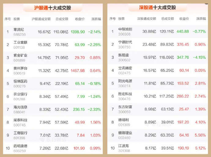 4、北向资金共成交1999.06亿元,占两市总成交额的12.16%——