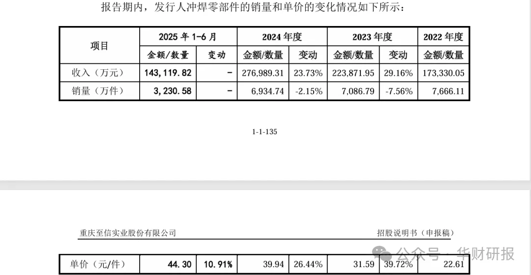 在冲焊零部件收入增长的背后,有必要特别留意一个现象——销售价格扶摇直上,销量不断走低。