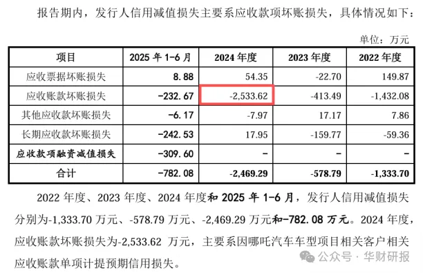 据招股说明书披露,2024年至信股份应收账款坏账损失高达2533.62万元,主要就是哪吒汽车拖欠的货款难以收回(下图)。而2023年及2024年,至信股份合计对哪吒汽车的销售收入不过2938.6万元。