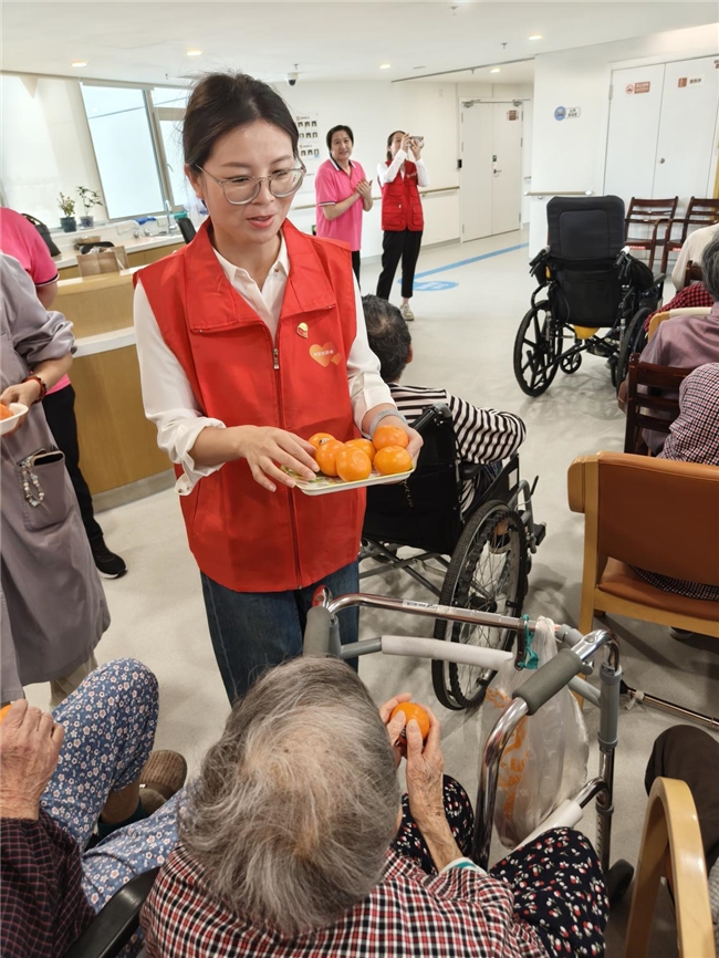 活动在温馨的氛围中拉开序幕。志愿者们首先将精心准备的香蕉、橘子、小番茄等新鲜水果清洗、分装并亲手送到每一位老人手中。甘甜的水果,亲切的问候,瞬间拉近了彼此的距离,老人们的脸上绽放出开心的笑容,营造出温馨又具“烟火气”的活动氛围。