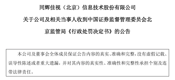 针对同辉信息上述财务造假行为,北京证监局作出如下处罚决定: