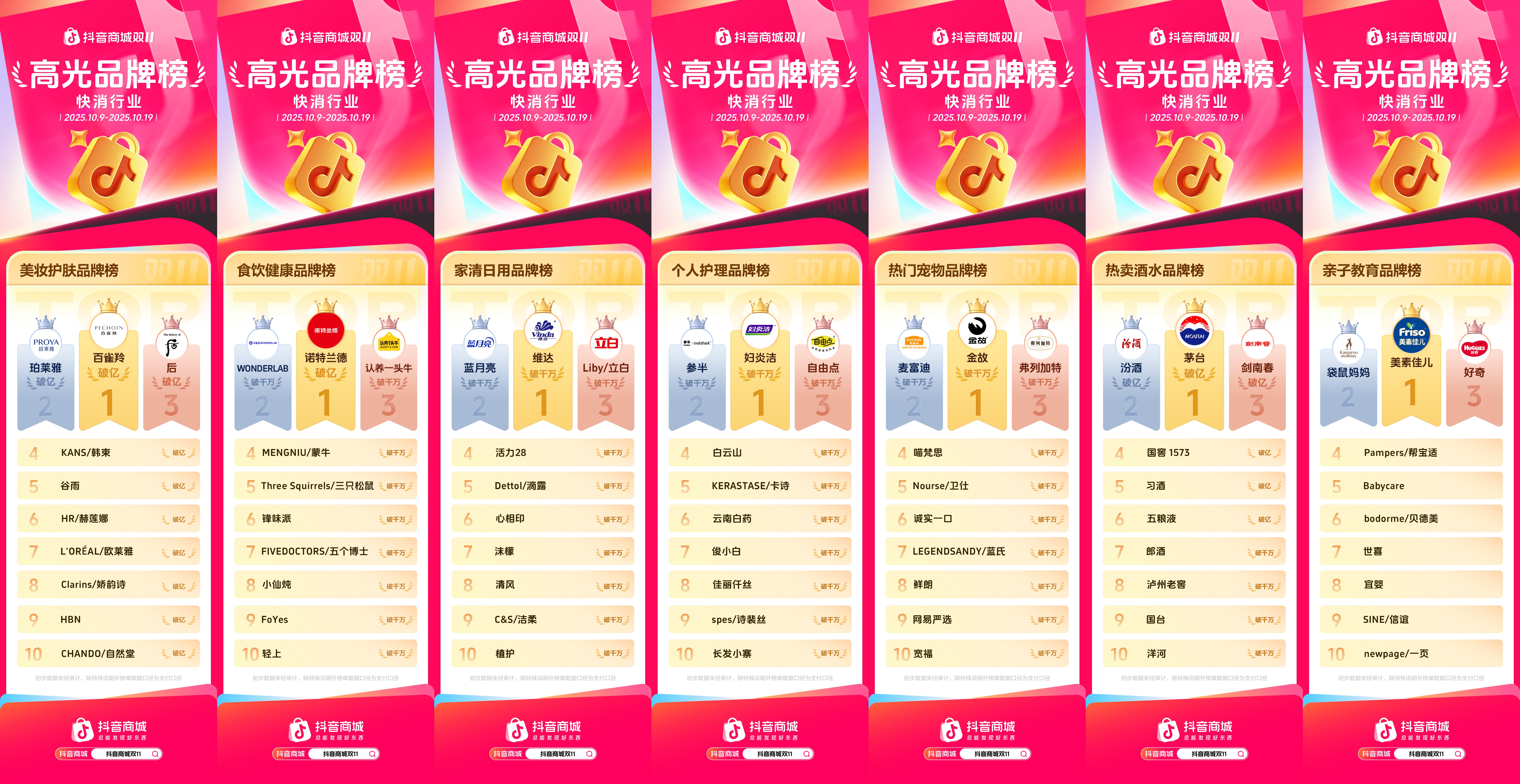 美妆仍是双11重点囤货品类,百雀羚、珀莱雅、THE WHOO占据美妆品牌榜TOP3;养生健康类食品愈发受到用户重视,膳食营养补充剂品牌诺特兰德位列食饮健康品牌榜TOP1;维达、妇炎洁分别位居家清日用、个人护理品牌榜首;宠物新锐品牌金故领跑位居热门宠物品牌榜榜首;茅台、汾酒、剑南春等白酒品牌销售额破亿,位居榜单前列;亲子教育行业头部品牌势头强劲,美素佳儿夺得亲子教育行业品牌榜TOP1。