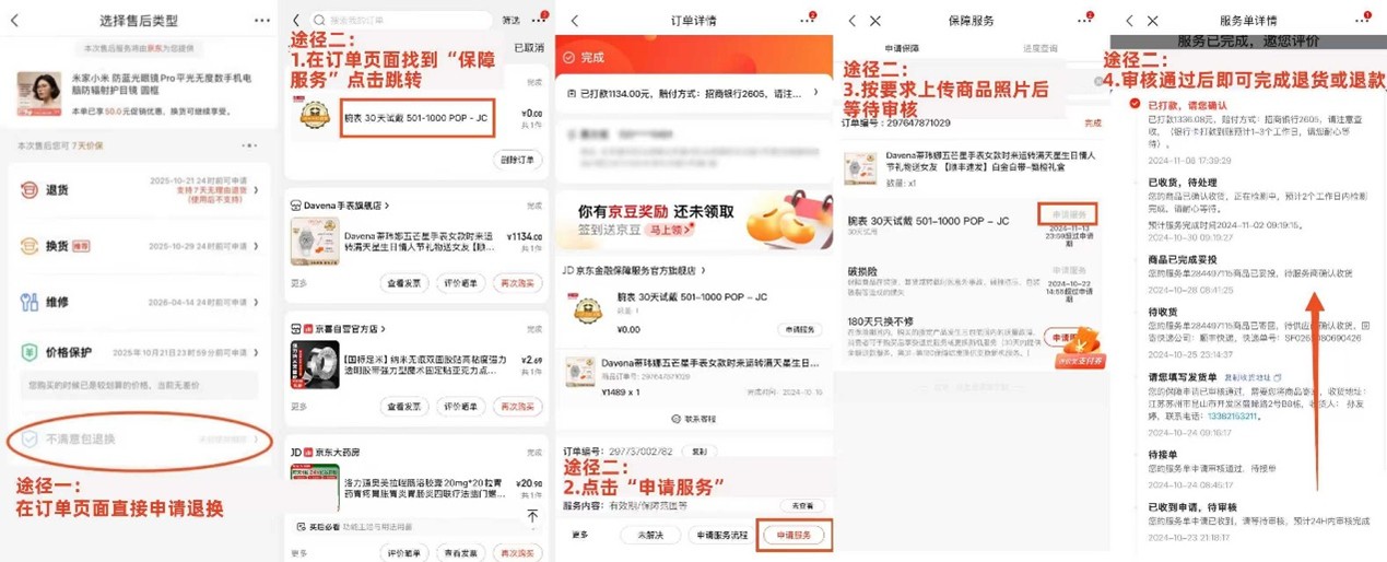 今年11.11期间,京东将自营眼镜品类的售后保障由7天无理由退换升级为“30天不满意包退换”,进一步降低消费者的选购顾虑。即日起,购买支持该服务的自营眼镜商品后,如对款式、度数或佩戴效果不满意,消费者可在订单完成后的第8至30天内,通过订单页面找到服务申请入口,按要求上传商品照片,确保商品外观完好、功能正常、不影响二次销售,即可享受退货退款服务。