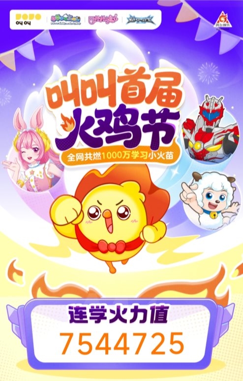目前,叫叫App首页及“学习”页均已开设“火”鸡节专属入口,用户参与每日学习即可开启解救之旅。未来,叫叫还将持续联动优质IP资源,围绕激励孩子“连续学”打造更多趣味场景,助力孩子培养起珍贵的“自主学习力”,更好地应对未来世界的挑战。