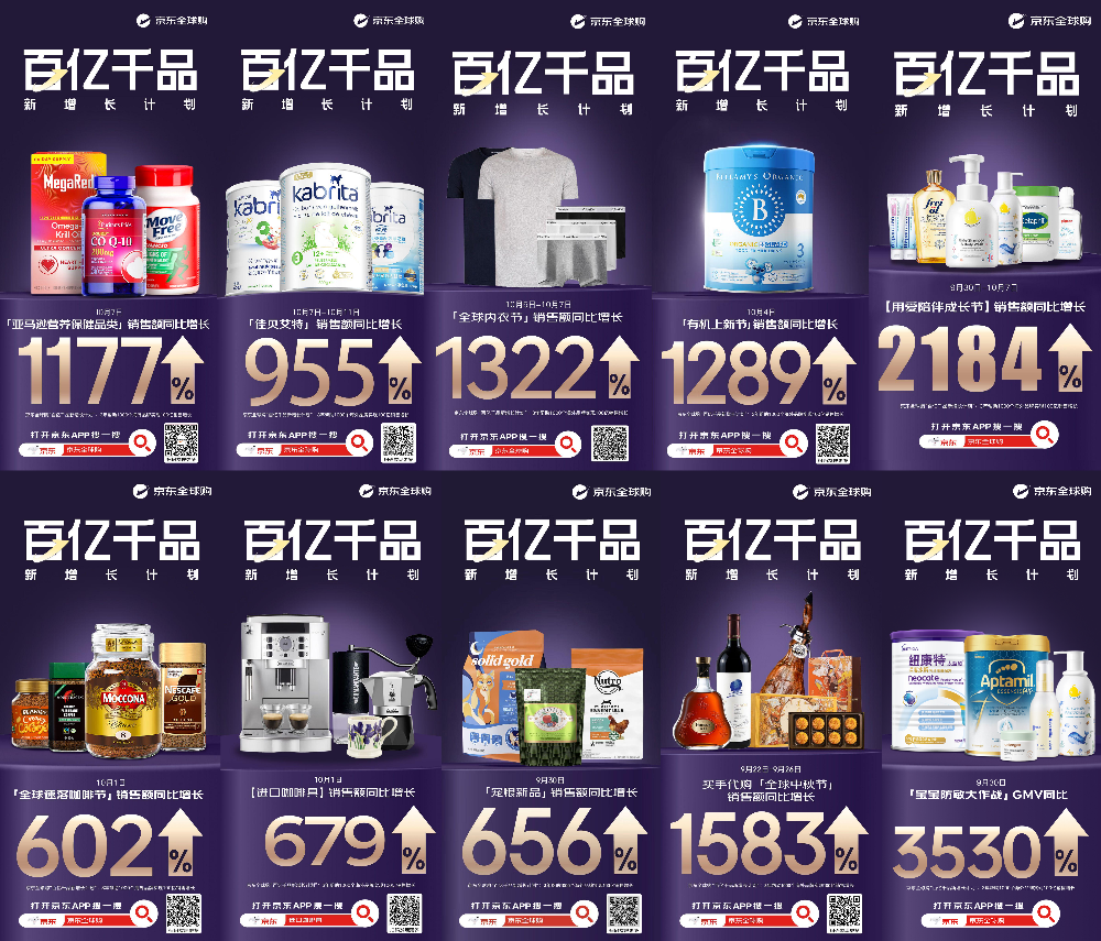 今年7月,京东全球购推出了“百亿千品新增长计划”,以“百年品牌”、“国家馆”和“全球好物召集令”三大项目为核心,目标在未来三年内引入1000个海外新品牌,并助力实现累计100亿元销售增长。目前,该计划取得实质性进展,已累计帮助超100个进口品牌和品类实现了活动期成交额平均同比增长超19倍。