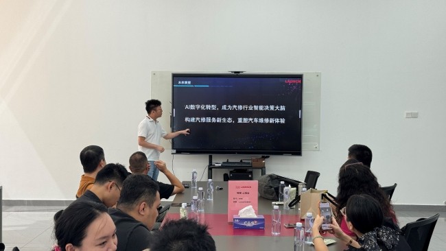 在展厅参观结束后,媒体团和元征代表共同参与了交流座谈会。会上,AI智能维修大模型成为热议焦点。作为技术代表,产品经理安海月先生以元征AI重构汽修服务新生态为主题,分享了公司对于AI技术的发展蓝图。与此同时,蒋总进一步展示了即将上市的元征新品。