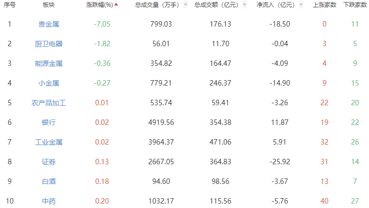 板块方面,煤炭开采加工、燃气、电机等涨幅居前,贵金属、厨卫电器、能源金属等跌幅居前。