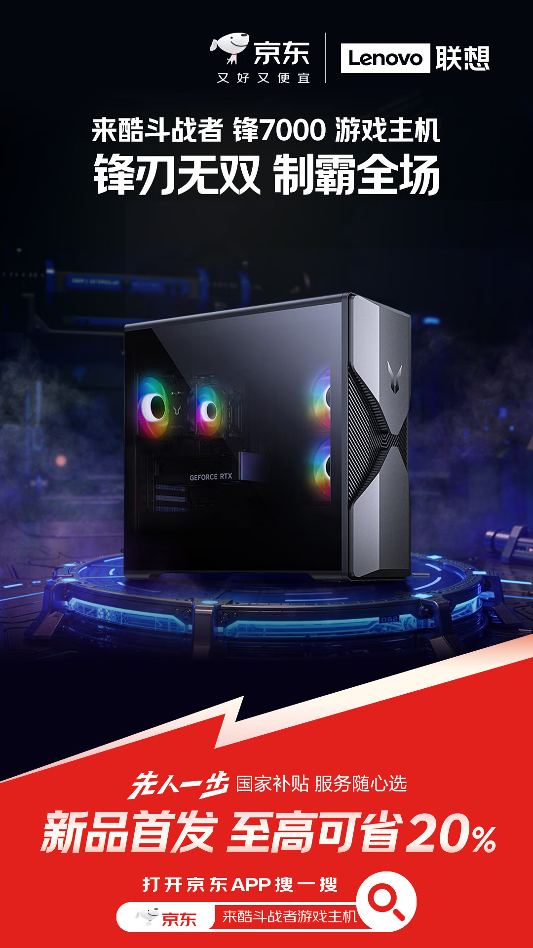 10月20日晚8点,京东11.11先人一步开售联想来酷斗战者系列首款高性能电竞主机——锋7000,为玩家带来今秋不容错过的装备升级机遇。京东首发期间,用户可享6期免息,其中搭载新一代RTX5060显卡的高配机型,补贴后价格不高于5999元;RTX3050版本叠加国家补贴政策,到手价不高于4299元;以极具竞争力的价格直面玩家对高性能主机的需求,让流畅沉浸的电竞体验触手可及。